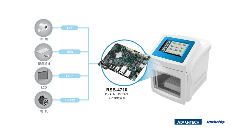 目前,搭载RK3399的研华RSB-4710、RSB-3710单板电脑均已量产并落地。在常态化疫情防控的今天,大型PCR工作站、医用PCR设备以及小型一体式PCR设备针对不同使用场景都得到了广泛的应用。