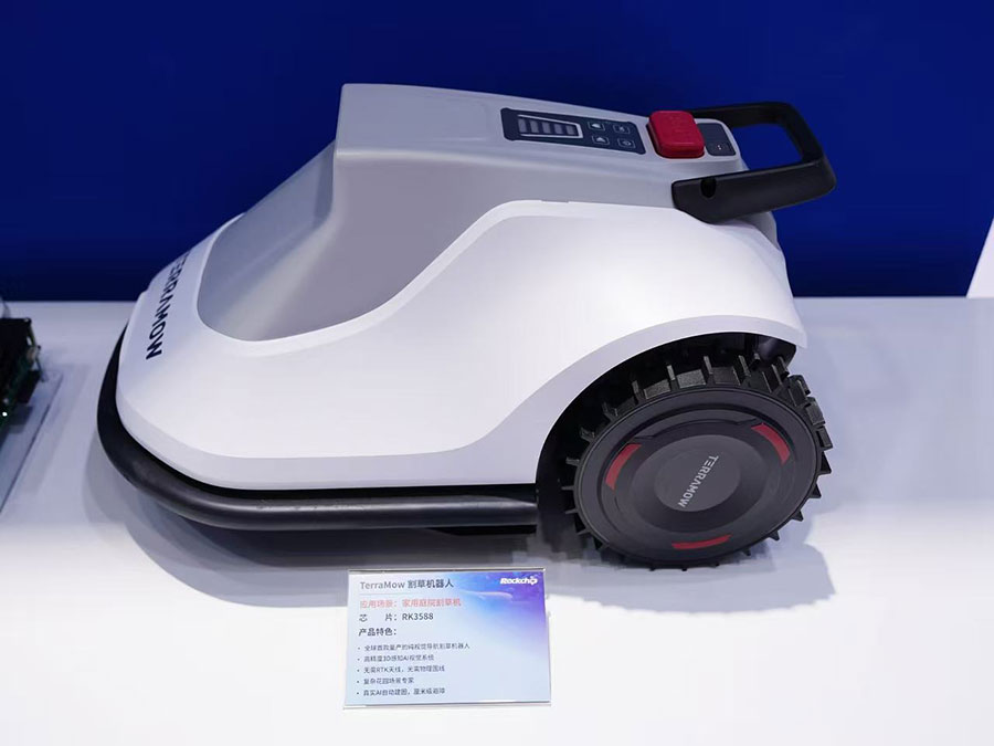 • 智能割草机:纯视觉导航割草机器人,搭载高精度3D感知AI视觉系统,无需RTK天线,无需物理围线,真实AI自动建图,实现厘米级避障,展示了瑞芯微在消费级与专业级机器人市场的广泛赋能